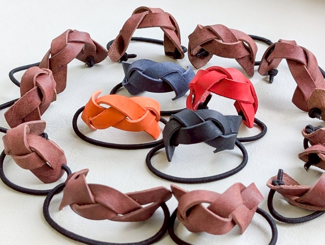 Intreccio_H(イントレッチョ・ヘアー)|ヘアゴム|イタリアンレザー・ハンドメイド・アクセサリー・エイジング
