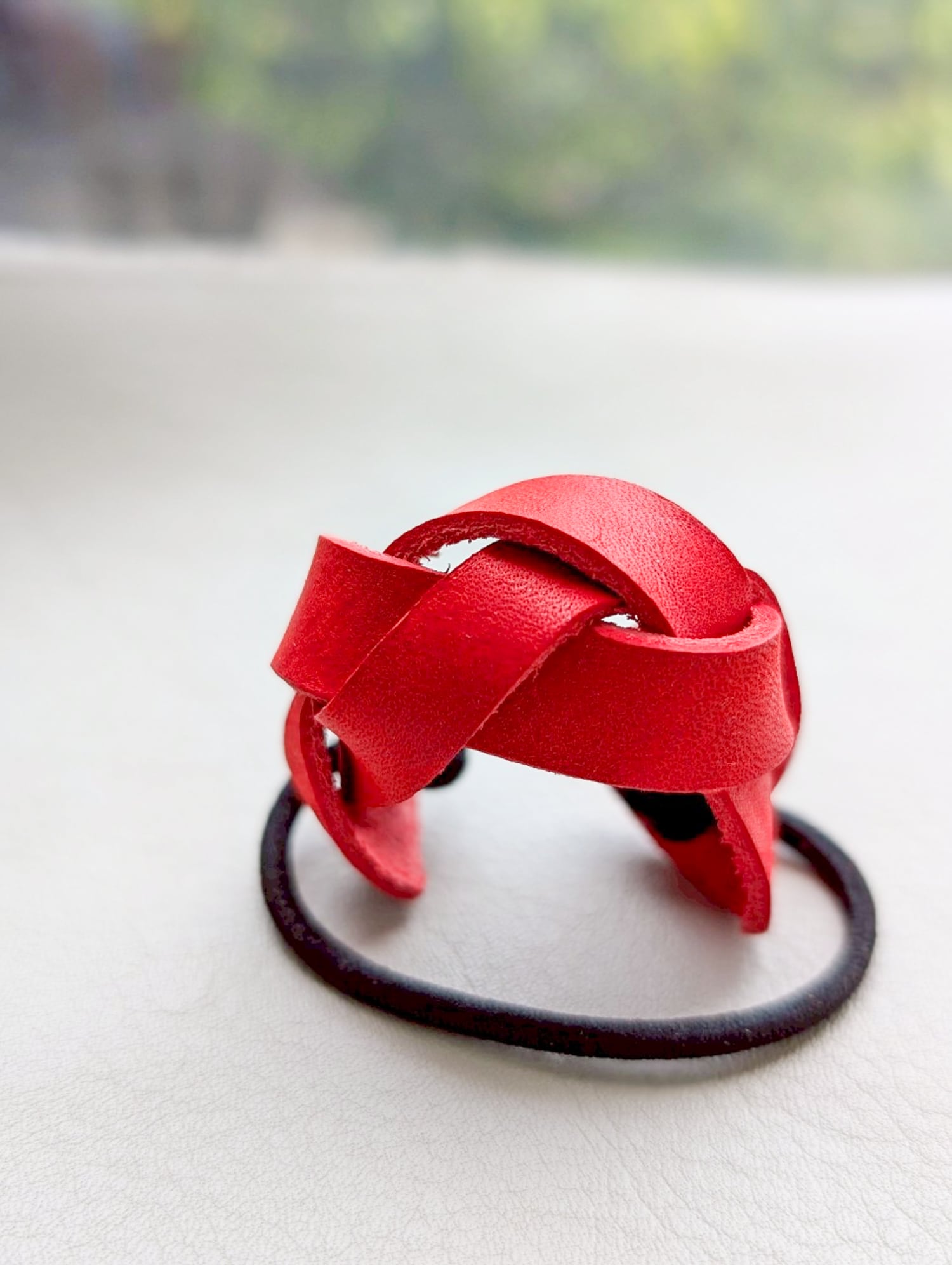 上質なレザーを手作業で丁寧に編み込んだ、シンプルながらも存在感のあるヘアゴム。